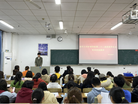 2021年4月7日晚,beat365手机版官网入口在一教111教室举行第二十二届团委员工会干部复试竞选演讲。2019级、2020级共54名候选人参加竞选。公司党委副书记彭建南、团委书记夏代会、辅导员夏艺萍以及第二十一届团委员工会干部出席活动。2019和2020级各班代表观看并参与投票,竞选演讲由198班王淞主持。