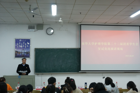 演讲伊始,192班戈宇率先上台竞选青年志愿者工作部部长,他讲述了自己两年的院青志工作经历和带领青年志愿者们继续前行的决心,赢得了现场观众的阵阵掌声。随后,各竞选者按照抽签顺序依次演讲发言。竞聘过程中,竞选者们个个满怀自信,热情激扬,向各位领导老师和同学们充分表达自身优势,以及对团学工作的热忱与服务同学的愿望,展现出护理学子积极进取、力争上游的精神风貌。演讲结束后,各员工代表秉着公平公正公开的原则,对各竞选者进行不记名投票。