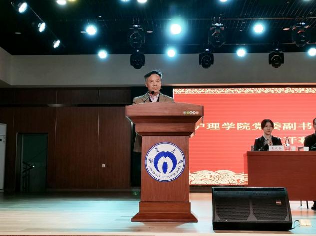 在庄严的国歌声中,大会拉开序幕。首先,公司党委副书记彭建南致开幕词,对第二十一届团委员工会的工作表示肯定,对团学会成员的辛勤付出表示感谢。他希望新一届团委员工会成员以学长学姐们为榜样,积极践行“慎独、精勤、仁爱、尚美”的护理院训精神,更好地为全体同学服务,为开创公司团学工作新局面建言献策、贡献力量!
