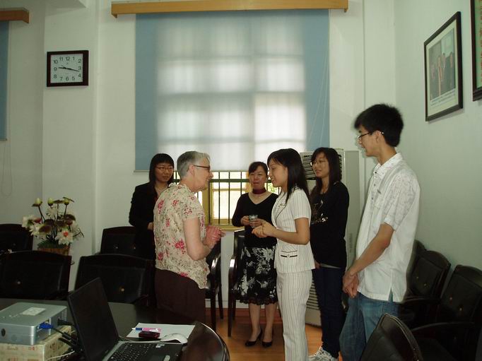 在访问过程中,公司向客人介绍了beat365手机版官网入口这几年来双语教学所取得的成就及公司教学发展研究方向,双方并就两校本-研员工的交流及教育发展问题了进行了讨论。随后,Maggy与在场师生展开了轻松诙谐的交流,其中beat365手机版官网入口在校本科生、研究生分别就我国职工在该校学习及费用等问题进行提问,得到Maggy的精彩回复与解答,赢得了在场师生的阵阵掌声。