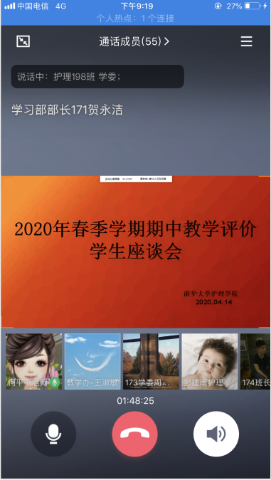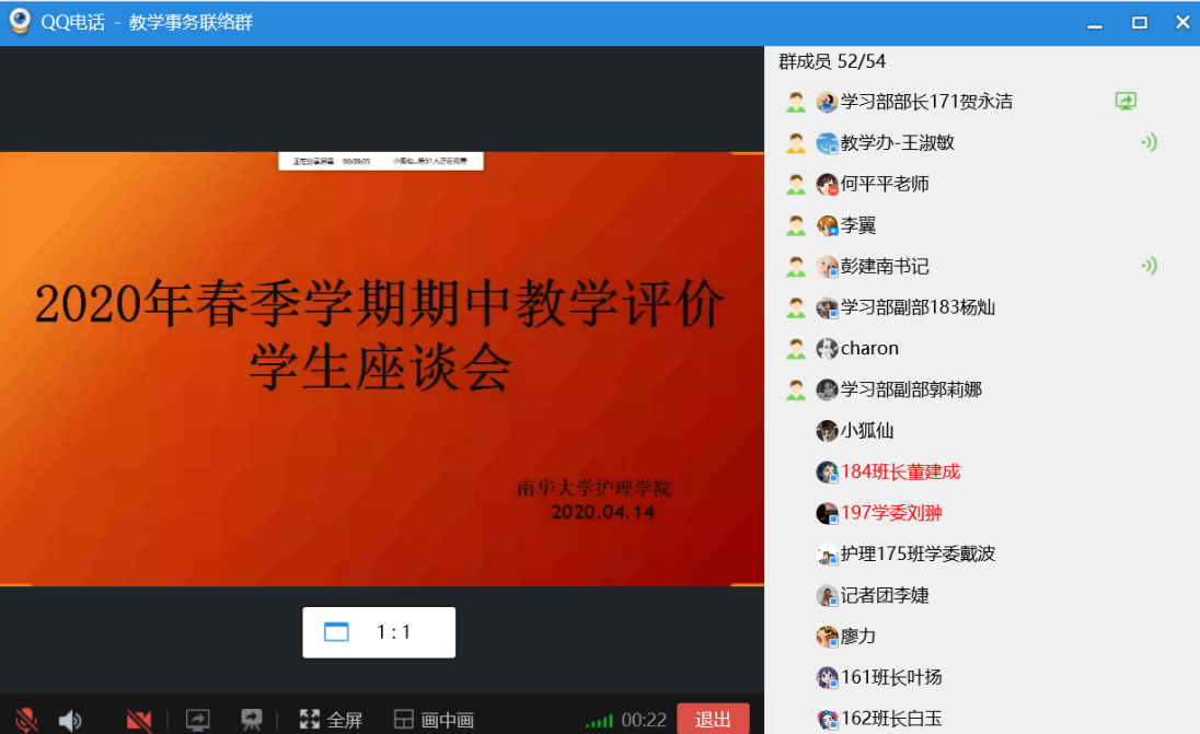 会上,各班代表进行班级意见建议反馈,围绕课程设置、教师教学态度与方法及教学设施等情况提出了相关建议与意见。同学们纷纷表示,虽然网络课程存在一些困难,但是老师们课前认真备课、讲课时耐心细致生动幽默、课后答疑详细,同学们非常感谢老师们的辛苦付出。由于线上教学的局限性,大家也反映了目前教学存在的一些问题,如网络教学时网速过慢、卡顿影响上课进度、缺乏教材难以理解消化以及线上学习平台过多导致课程繁杂等。