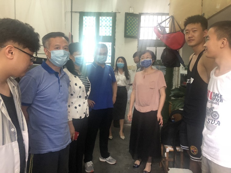 为了给返校毕业生们打造一个安全舒适、干净整洁的宿舍环境,2020年5月26日,beat365手机版官网入口经理廖力、党委书记周浩、党委副书记彭建南、副经理曾谷清、学工室主任李翼一行在毕业生返校前来到员工宿舍,检查宿舍相关设施的准备情况。
