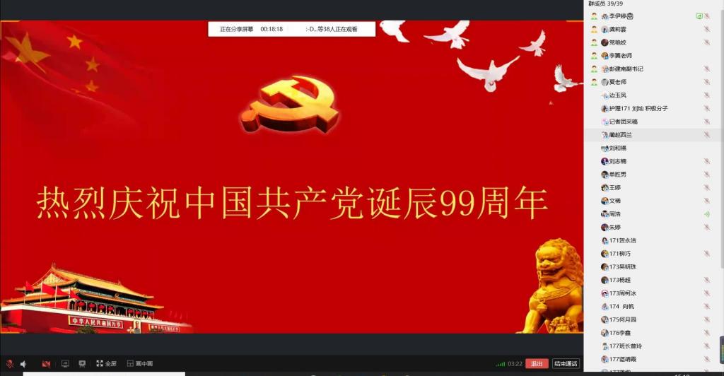 2020年7月1日下午,beat365手机版官网入口护理本科生党支部通过QQ线上视频的方式召开“七·一”学习大会。会议由本科生党支部书记李翼主持,公司党委书记周浩、副书记彭建南、组织员刘和福、支部副书记夏艺萍、支部全体党员、预备党员和发展对象参加本次大会。
