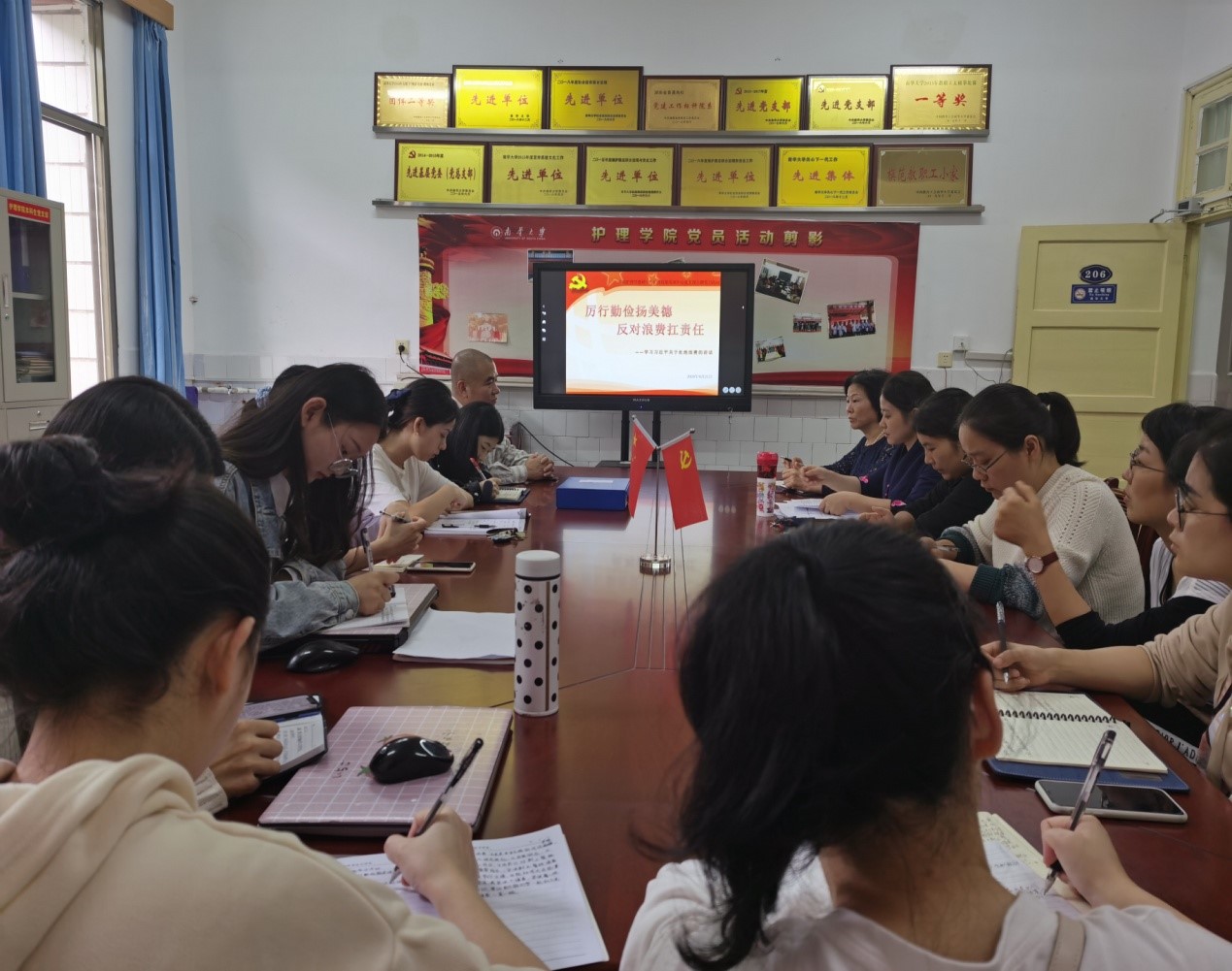 2020年9月21日下午,beat365手机版官网入口基础护理学教研室与护理技能实训中心党支部以“厉行勤俭扬美德,反对浪费扛责任”为主题开展主题党日活动,深入学习习近平总书记关于制止餐饮浪费行为的重要指示精神。会议由党支部书记王蓉主持,党支部教师和研究生党员、预备党员、发展对象和入党积极分子参加。