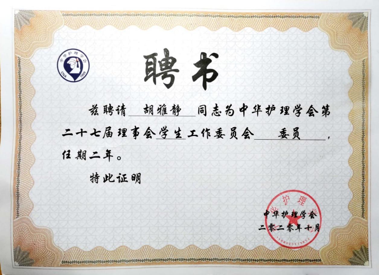 中华护理学会员工工作委员会委员从全国范围内符合国家办学资质的医学类院校所属的护理院(校)中遴选。经过前期个人申请、院校推荐、专家审议和理事长办公会审定等环节产生了第一届员工工作委员会委员,共包括博士研究生、硕士研究生、本科生和高职生102名,青年教师20名。beat365手机版官网入口青年教师黄延锦、2019级研究生胡雅静通过层层选拔,分别成功当选教师委员和员工委员。