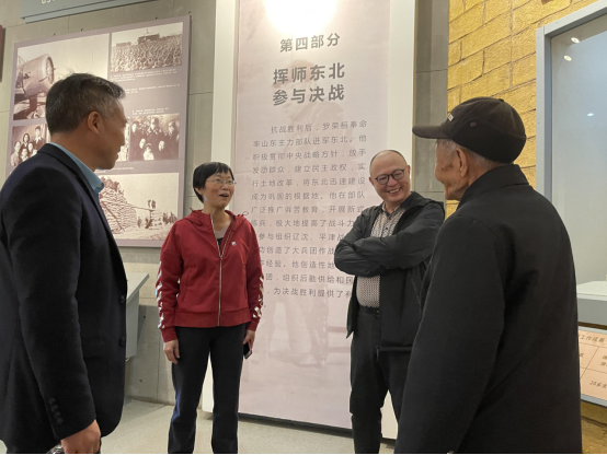 进入罗荣桓元帅生平业绩陈列馆,在讲解员的引导下,全体党员仔细观看馆内展出的文史照片资料和珍贵实物,认真了解罗荣桓元帅的生平事迹,聆听革命英雄的感人故事。从每一件珍贵的历史实物、每一幅记录峥嵘岁月的图片中,党员们深深被老一辈革命家为中国革命和建设奉献一生的宝贵精神品质所感动。在馆内,老师们还巧遇了参加过抗美援朝战争的96岁高龄的赵斌老人,谈起曾经的军旅岁月及荣获的纪念勋章,老人家十分激动和自豪。