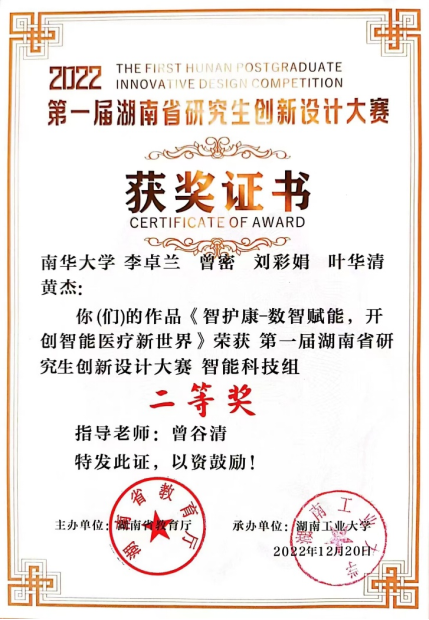 近日,湖南省第一届研究生创新设计大赛、湖南省第十五届研究生创新论坛“互联网+延伸服务”智慧护理分论坛等多项大赛结果公布。经过激烈角逐,公司多名护理研究生获奖,其中一等奖5项,二等奖8项,三等奖2项。