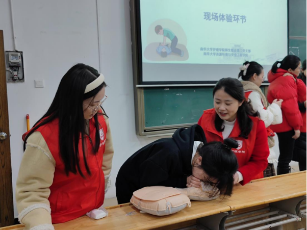 此次“普及急救知识,守护珍贵生命”系列活动在beat365手机版官网入口两个校区开展。活动培训内容主要包括“海姆立克急救法”和“心肺复苏术”等急救技术。培训分为模拟演示和现场体验两个环节。王蓉和方静芝两位老师首先进行了模拟演示,然后同学们积极主动地上台参与现场体验。现场体验环节中,老师和研究生从旁指导,手把手纠正同学们的动作,确保每一位同学都掌握急救技术的操作要领。