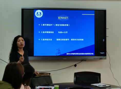 单云丽老师从员工给自己的一封信开启了这次分享,单老师结合自身的辅导员工作经验,分享了与员工相处的方法和批评的技巧,并结合具体事例和做法,给了辅导员很多建议,分享中她强调辅导员工作一定要有耐心,态度温和、宽严相济,在处理员工事务中,要不要批评,什么时候什么场合批评,都要讲究方式方法。