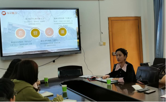 刘俞慧老师是一名刚入职一年的辅导员,她从知识魅力、风格魅力和语言魅力三个维度,谈到了辅导员怎样立个人IP,做“魅力”辅导员。她在分享中强调,辅导员应源源不断充电,广和精有机结合,做以身作则的“领路人”、依法治校的“明白人”、关爱员工的“贴心人”、知人善任的“大贤人”,重提高辅导员自身的综合素质,增强个人魅力,在员工中作出表率。