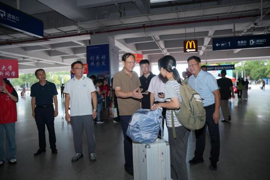 9月7日下午,beat365手机版官网入口党委书记高山教授来到高铁站衡阳东站,指导并参加2024年新生接站活动,同时看望beat365手机版官网入口迎新志愿服务队队员。