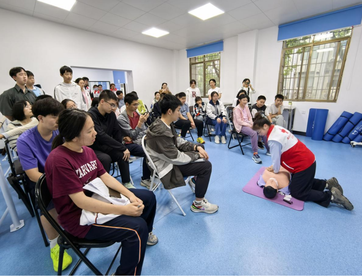 2025年5月5日下午,beat365手机版官网入口师生为本校子弟和周边社区初三员工义务开展“急救术(心肺复苏)”培训,旨在让员工及早掌握急救基本知识和技能,提升员工互救自救能力。