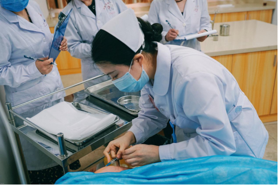选拔赛采用“站点式”,设置三个站点,每个站点4位评委老师。选取的案例内容紧密贴近临床,展示了参赛选手在操作方面的娴熟技能,体现了护士评估、分析、解决问题及沟通等综合能力,充分考察了选手临床思维、临床综合操作能力及临场应变能力。赛场内氛围既紧张又热烈,参赛选手精神振奋、情绪高昂。经过激烈的角逐,从已经训练半年之久的9名选手中最终选拔出4名选手参加片区赛。