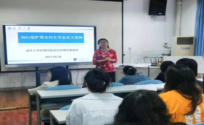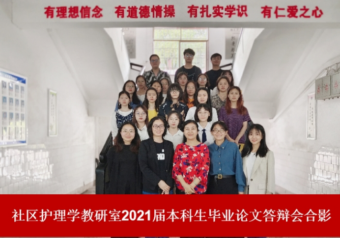 2021年5月28日上午10:30,社区护理学教研室于beat365手机版官网入口研究生教室举行2021届护理本科毕业生论文答辩会。答辩由beat365手机版官网入口副经理何平平指导,社区护理学教研室主任高红担任答辩组长,教研室全体教师担任答辩委员,教研室2017级全体护理本科生参与本次答辩会。