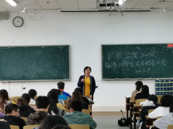 会议伊始,张可、王双、方庆虹、刘佳佳分别向2020级全体同学分享学习经验,她们特别提到了在双学位班的宝贵学习经历,希望学弟学妹们要积极争取机会,认真规划学业,珍惜时间,努力学习。在她们分享经验的同时,在座的全体同学认真聆听,汲取经验。随后,夏代会老师发言,她提到2020级全体同学在学业方面还有很大的上升空间,希望同学们做好时间安排,提高自制力,营造优良的学风氛围。此外,她还强调了各类安全问题和纪律问题。最后,彭建南副书记向全体同学细致讲解了报名辅修、双学位的相关事宜,并希望同学们不忘初心,抓住机会,提升自我,坚持目标不放弃。
