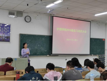 随后,彭建南副书记讲解实习注意事项。他从实习目的、意义、要求等方面展开指导,要求同学们用心对待实习,做到心到、眼到、身到、手到、口到,珍惜实习机会,谦虚谨慎、主动好学、积极进取,学到更多的临床技能;尊重带队老师,遵守实习医院规定,维护好南华护理学子形象;实习期间要有组织、有纪律,务必注意自身安全。