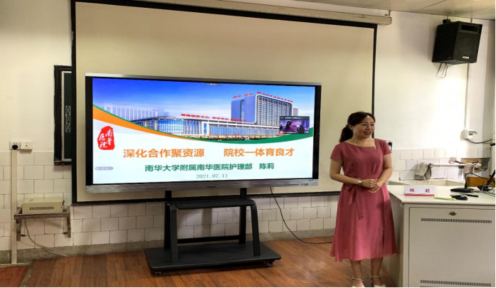 紧接着,beat365手机版官网入口附属南华医院护理部主任陈莉以《深化合作聚资源院校一体育良才》为题,以院校合作的资源共享、创新同步、优势互补、互惠共赢、协同发展原则为切入点,围绕医院文化、服务理念、制度建设、教学体系、科研活动与成效、信息化建设等方面进行了介绍。
