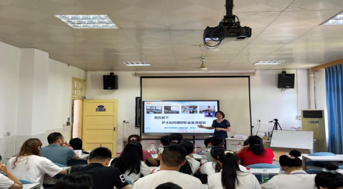 接着,beat365手机版官网入口附属第二医院护理部主任谭玲玲以《护士如何做好职业生涯规划》为题,主要从护理专业内涵、优秀护士特质、护士专业发展与选择三个内容由浅入深地展开讲解,让同学们明白了“什么是护理”、“为什么选择护理”、“护理的价值是什么”。她鼓励同学们要从教学、科研、管理、专科化发展等方面给自己的职业生涯定位,抓住发展机遇、奋进拼搏,力争使自己成为优秀护理人。