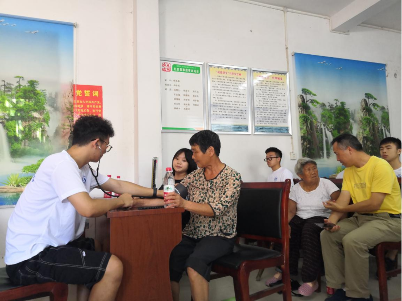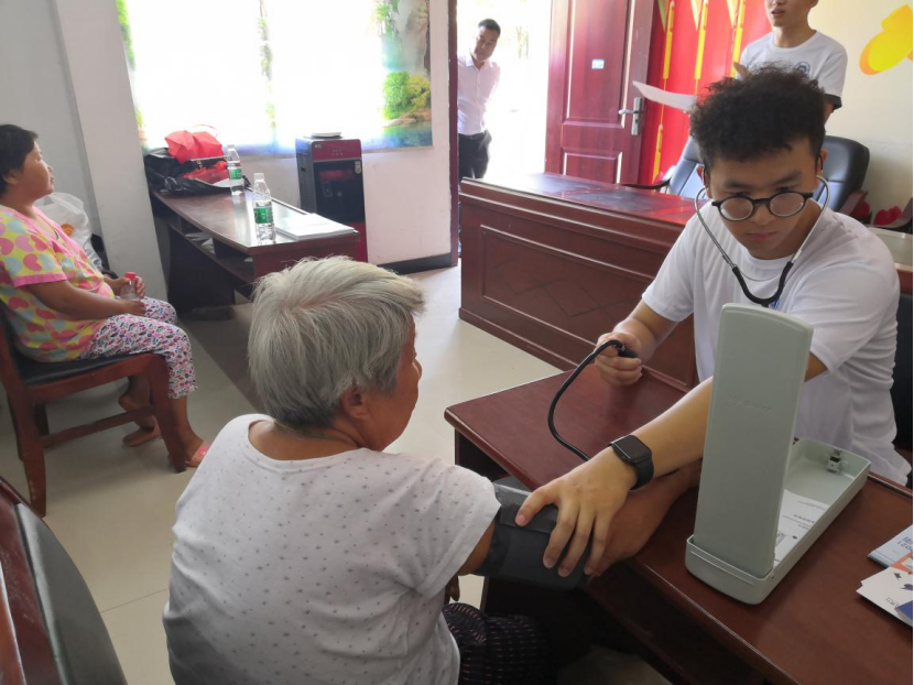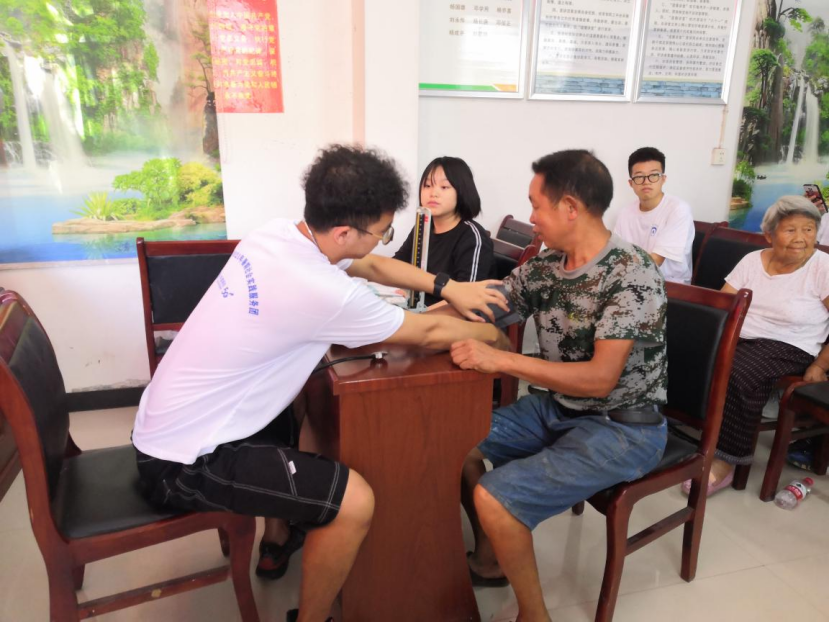 随后,2019级本科生谭郁夫为村民们做农业现代化政策科普宣讲。宣讲间隙中,应锰组织其余团队成员为村民量血压,并给予了相应的健康指导。村民们还就平时遇到的健康问题现场进行咨询,同学们都耐心地逐一解答,在场村民对此表示十分感激。