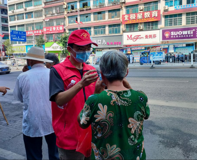 除在社区基层进行防疫行动外,也有同学参与到各个公共场所的防疫行动中。自8月2日以来,197班谭郁夫参加了当地交通运输局举办的新冠疫情防控宣传教育志愿服务活动。在活动中,他作为小队队长带领志愿者队伍分别在市人民医院、火车站附近的公交车站台进行防疫宣传劝导,以及在公交车上值守劝导。他还参加了当地组织的“呵护健康,传递文明”疫情防控的志愿服务活动,同样作为小队队长带领老员工志愿者队伍奔赴涟源市汽车站、人民公园、主要商业广场等人流密集区域进行疫情防控宣传劝导、酒精喷雾消毒和发放物资。同时,他积极参与线上疫情防控宣传工作,拍摄防疫知识短视频,宣传疫情防控防护知识。此外,他还积极发挥个人力量,在力所能及的范围内自行采购了物资,为烈日下的执勤人员发放防暑用品。