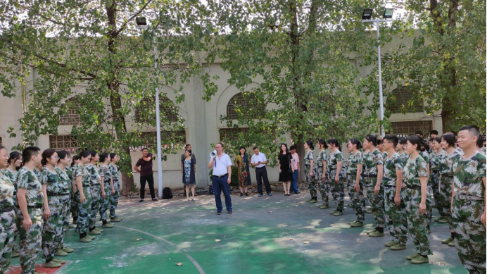 新生军训以来,院领导多次带领新生班主任、辅导员来到军训现场,与军训教官和老生志愿者亲切交谈,细心询问军训情况;热情地与新生打招呼,与新生一同表演节目,鼓舞士气、活跃气氛;温馨提示新生注意天气变化,健康作息、饮食规律,保重身体;勉励新生要在军训中发扬勇于拼搏的精神、吃苦耐劳的精神,磨炼意志和品质,以饱满的热情、昂扬的斗志圆满完成军训任务
