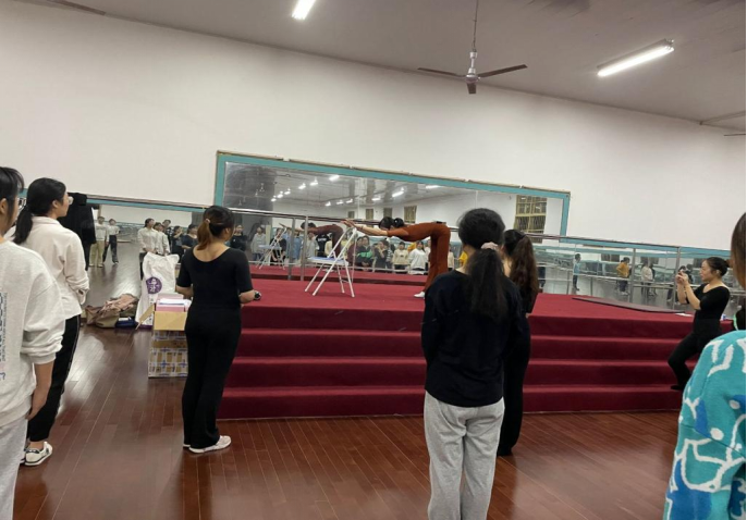 最后,为了让同学们放松,曾老师携全体助教以一支优美的舞蹈《大鱼》结束课堂,同学们坐在下面静静的欣赏,给予很好的反响。有同学感叹:“曾老师的柔韧性和苗条的身材真的惊艳到我们了,我们作为新一代的年轻人都自愧不如!”还有同学说:“我以前一直觉得自己很挺拔,但是通过今天这堂课,我才发现自己只是一味地追求向上,却没收尾椎,沉脚后跟,整个人都是前倾的状态。”马同学表示:“我好喜欢上这门课,感觉自己都变优雅了,以前从来没接触过,以后还想多来蹭曾老师的课!”