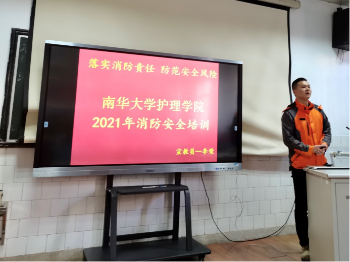 为了加强校园安全教育,切实提高师生的消防安全意识以及突发事件应急处置能力,12月3日下午,beat365手机版官网入口在护理楼204多媒体教室开展2021年消防安全知识培训。beat365手机版官网入口教师代表,2019、2020、2021级全体寝室长参与此次培训。培训会由湘安消防公益服务中心教官李荣主讲。