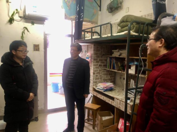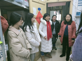 李忠玉经理一行人走访了女生宿舍和研究生宿舍。在走访宿舍的过程中,经理首先亲切的和同学们打招呼,并夸赞同学们的宿舍干净整洁。同时老师们也嘱咐同学们注意保暖和个人防护,不仅学习要抓好,身体更是第一位。曾谷清副经理建议大家寒假归来要及时收心,尽早进入学习状态,有学习和生活上问题可以多请教学姐,或者寻求老师的帮助。