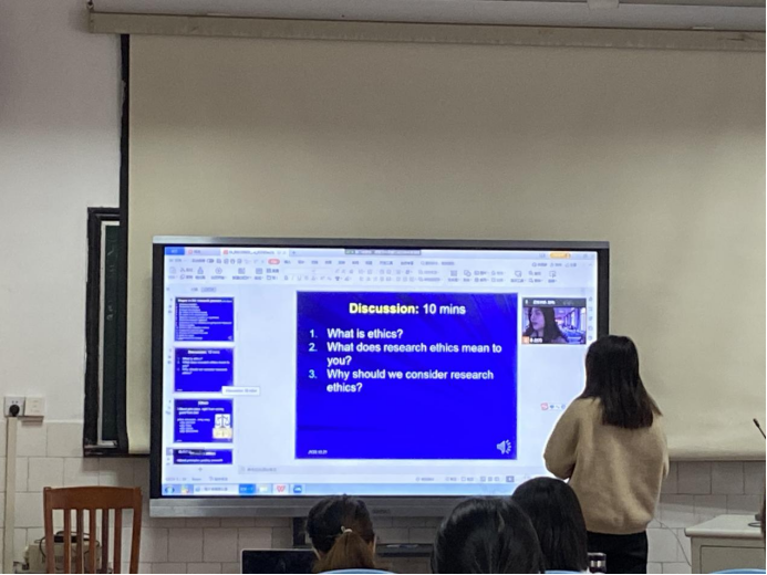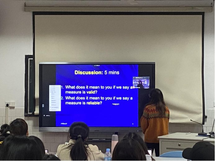 该课程共1.5个学分、24学时,采用全英文远程网上授课,课程内容涵盖抽样、信效度、质性研究、混合性研究、论文写作、论文投稿、文献回顾及评价、研究伦理等,丰富详实,吸引了公司及兄弟院校广大护理学及医学相关专业师生积极参与。课堂上全程英语互动,同学们听课认真、思维活跃,且能积极、主动跟海外专家线上课堂交流,整个课堂氛围活跃。