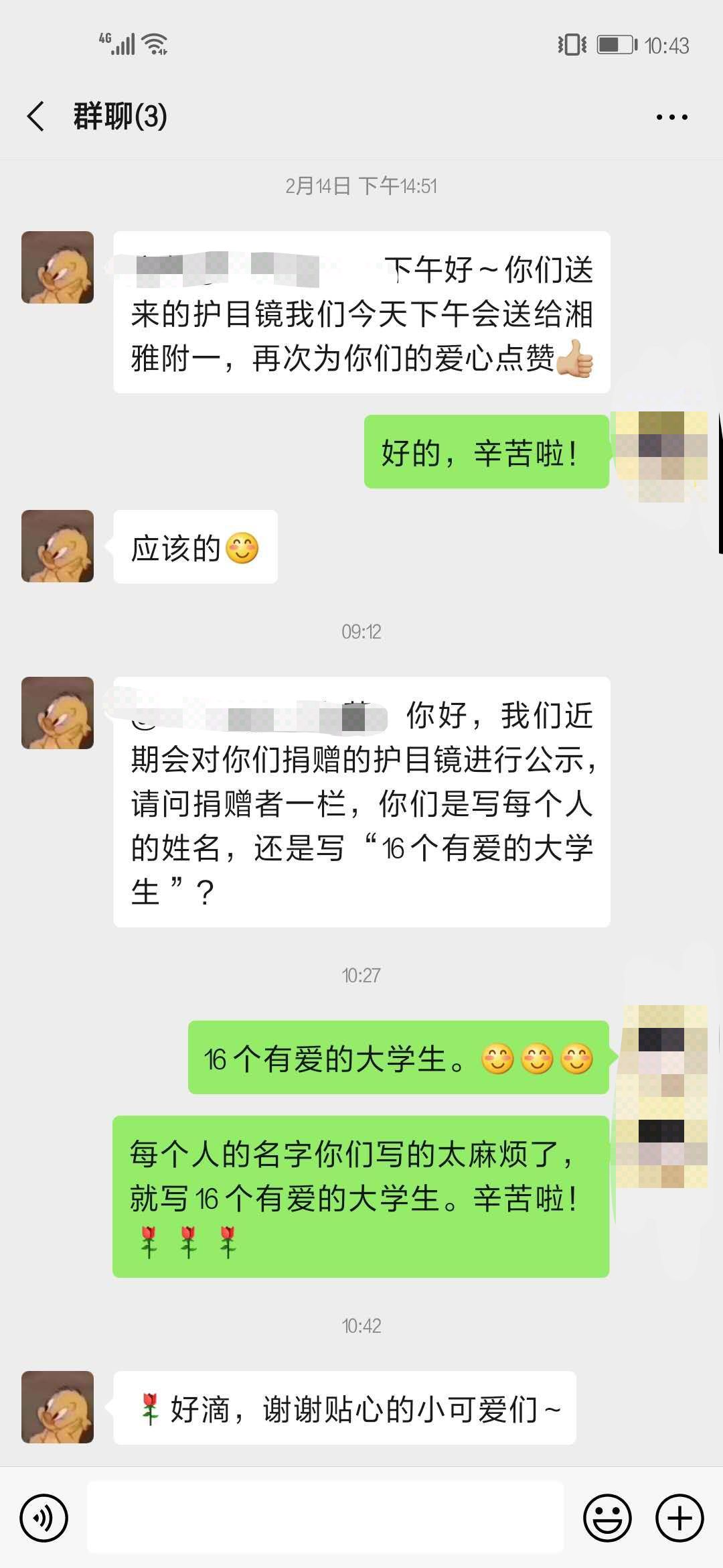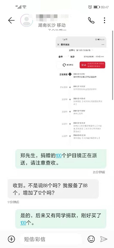 (191班贺梓琳组织筹集100个护目镜捐赠给湘雅医院)