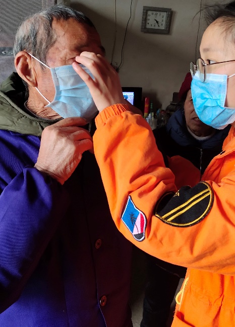 (197班李晚晴在教村中老人戴口罩)