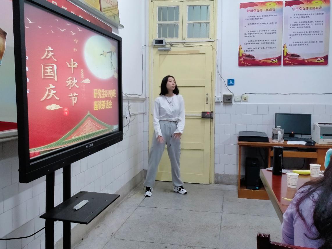 2020年9月30日,国庆中秋前夕夜,班主任何平平老师、研究生师姐们及199双学位班同学一同在公司党员活动室举行了一场欢度国庆中秋双节的茶话会。本次茶话会由何老师主持,何老师指导的研究生师姐们与199班同学们一起参与。摆上色香味俱全的月饼与小吃零食,大家其乐融融,共度佳节。