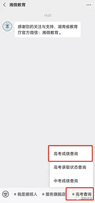 关注省教育厅官方微信“湘微教育”