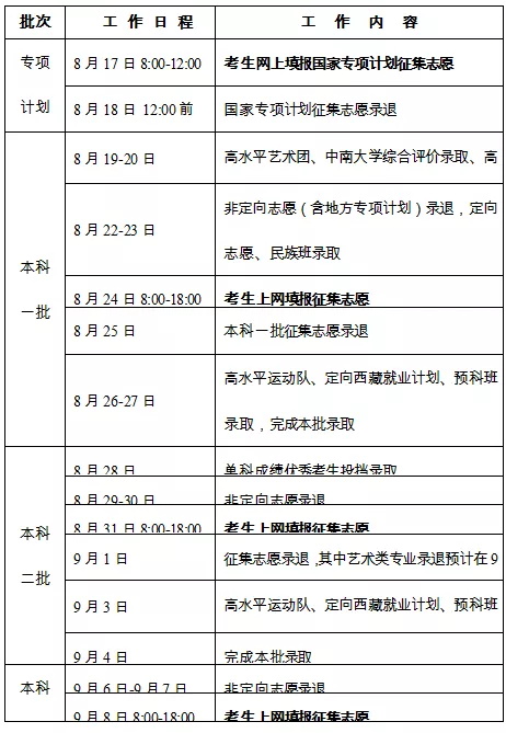 网上填报志愿时间安排表