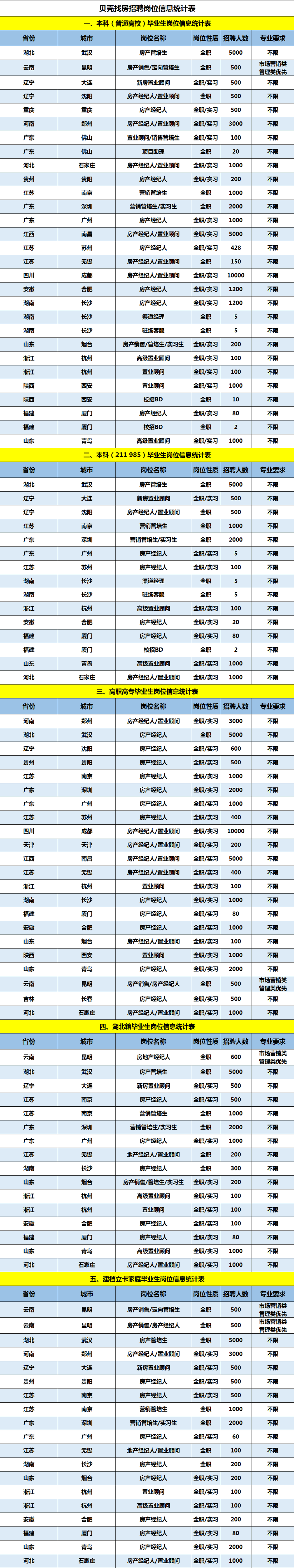 贝壳找房此次提供岗位信息
