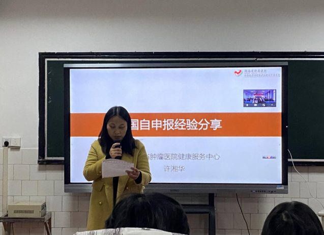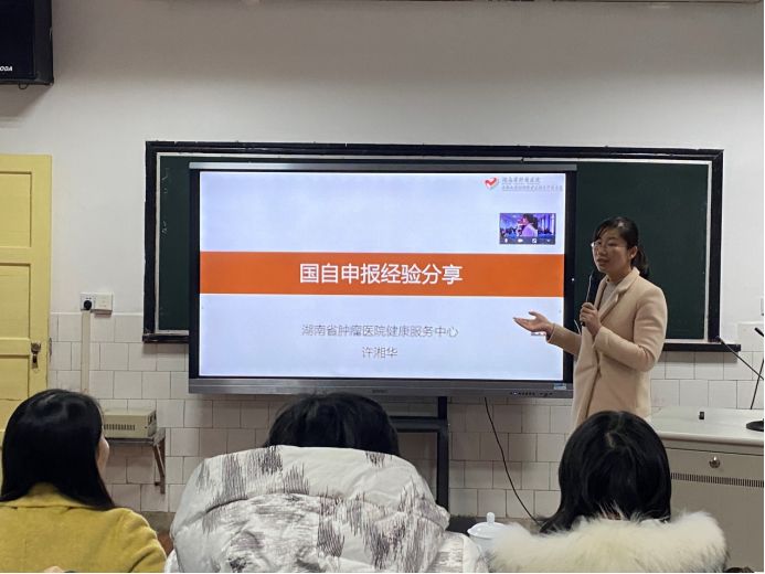 2022年1月7日下午,湖南省肿瘤医院健康服务中心副主任许湘华和贵州民族大学成四香老师应邀在beat365手机版官网入口学术报告厅分别以“国自申报经验分享”和“系统综述和荟萃分析”为主题进行线上线下相结合的专题讲座。beat365手机版官网入口全体院领导、硕士生导师和全体研究生参加,本次会议由beat365手机版官网入口经理李忠玉主持。