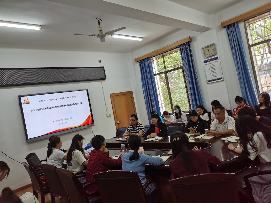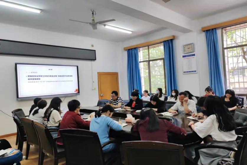 随后,研究生党员张可带领大家学习了《中华人民共和国国家安全法》,副书记刘雪冬和组织委员赵琼兰同大家一起就如何增强师生国家安全观、建设平安校园、增强忧患意识和强化底线思维作了中心发言。