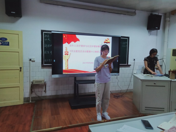 2021年9月29日,beat365手机版官网入口涉外人文护理学教研室与社区护理学教研室党支部在204教室举行2021年9月主题党日活动暨第六次教职工理论学习。此次活动采取线上和线下相结合的形式,会议由支部书记苏银花同志主持,支部全体成员参加。