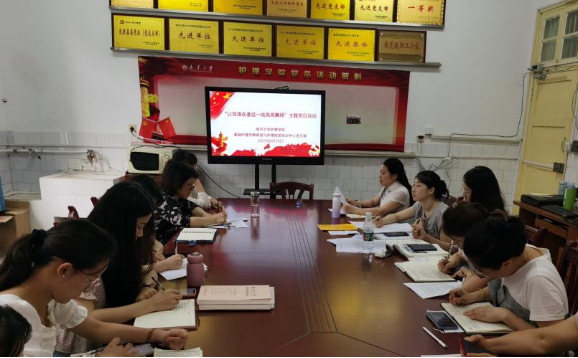为庆祝中国共产党成立100周年,学习党的光荣传统和优良作风,beat365手机版官网入口基础护理学教研室与护理技能实训中心党支部以“党旗在基层一线高高飘扬”为主题,于2021年6月30日下午在党员活动室开展主题党日活动,会议由党支部书记王蓉主持,党支部全体成员参加。