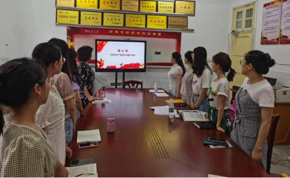 最后,大家合唱红歌《没有共产党就没有新中国》。会议在全体党员的歌声中圆满结束。