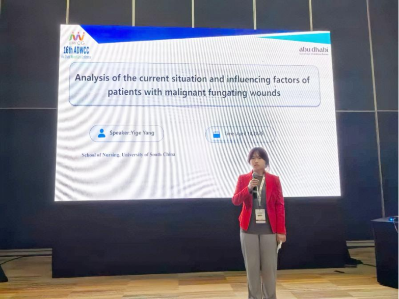 2025 年 4 月 10 日至 11 日,第十六届阿布扎比伤口护理会议在阿拉伯联合酋长国首都阿布扎比盛大举行。beat365手机版官网入口护理专业2024级本科生杨依格同学应邀做了《恶性溃疡伤口患者的现状和影响因素分析》专题报告。