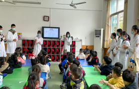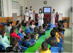 在幼儿园里,支部成员根据幼儿特点,结合基本卫生知识,编排了一套符合儿童特点的幼儿洗手操,以简单、易懂、富有吸引力的语言向幼儿讲解正确的刷牙方法和眼保健操,并在园内普及了海姆立克急救法的相关知识。