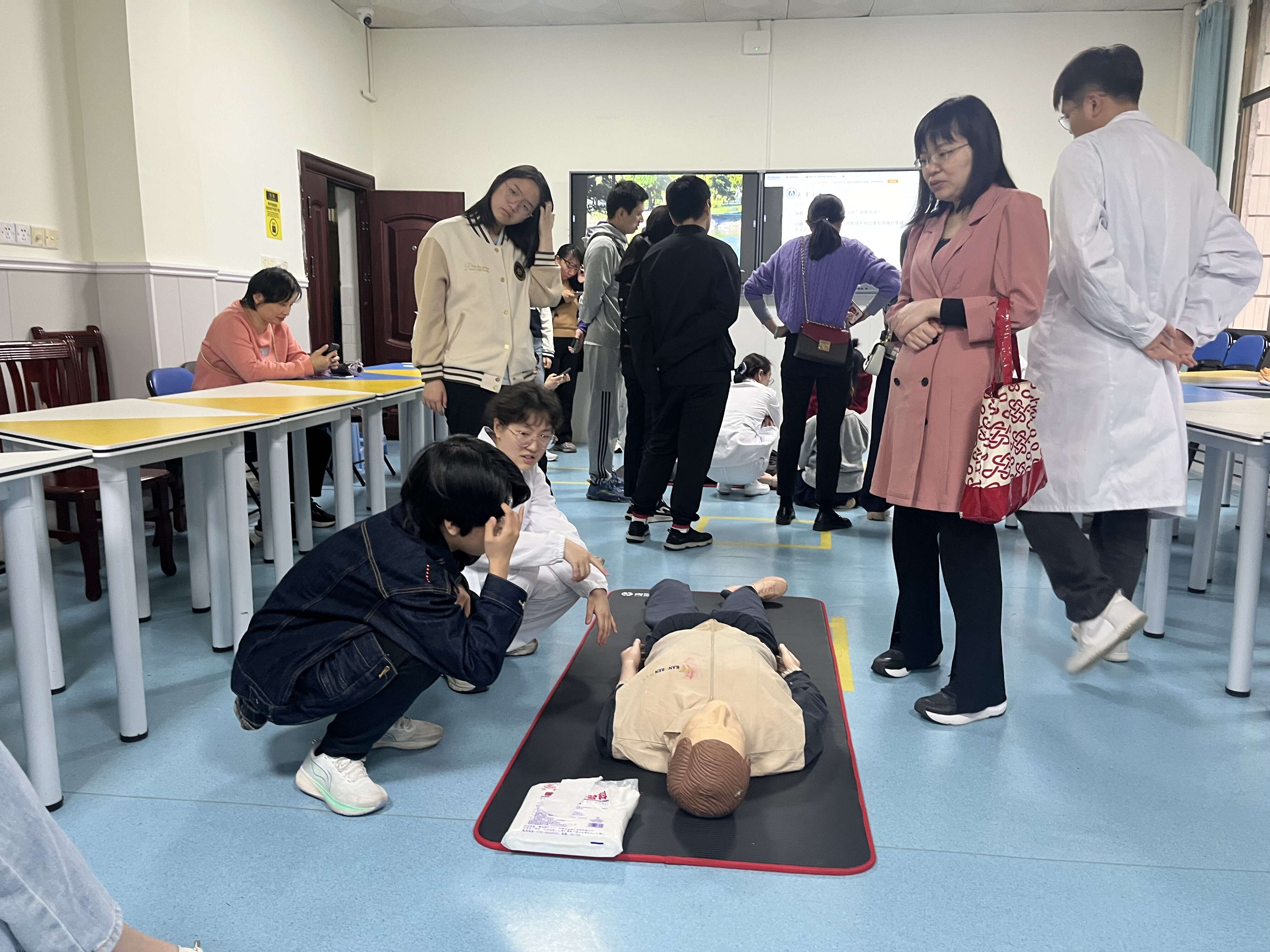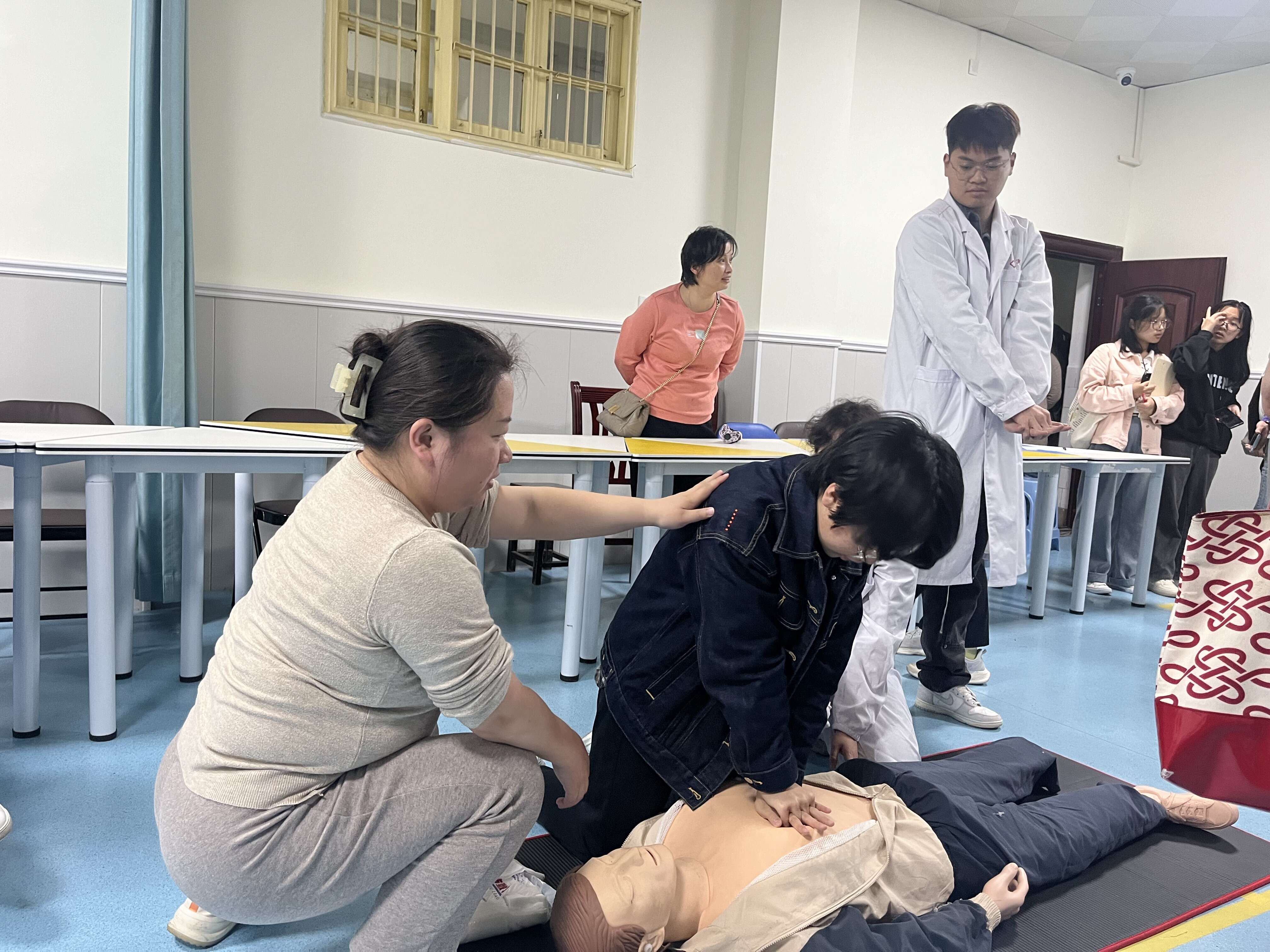 2024年5月3日,beat365手机版官网入口师生在护理实验楼免费为周边社区初三员工开展急救培训工作