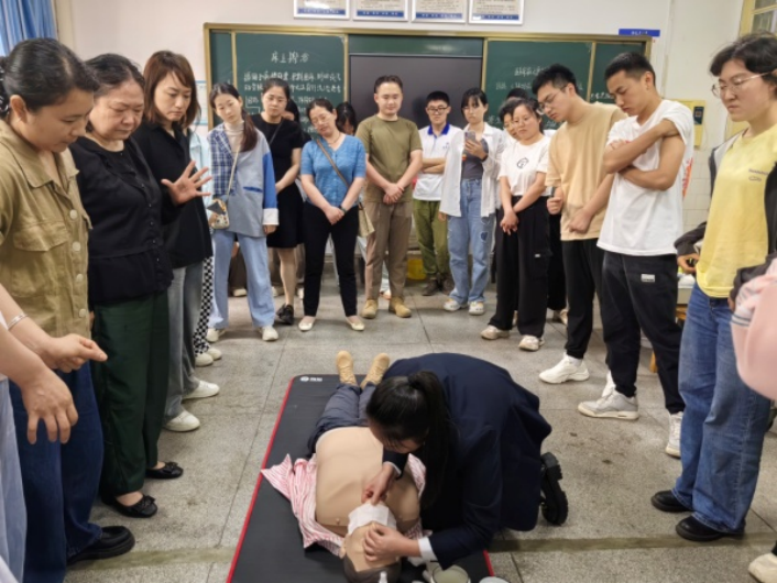 为了更加深入地贯彻落实《湖南省现场救护条例》,提高公众对于现场救护的认识和意识,广泛普及现场急救的知识和技能,加快构建公众自救互救体系,2024年5月19日,beat365手机版官网入口在护理实验中心举办了第一目击者培训班。公司邀请beat365手机版官网入口附属南华医院王莉莉、吴良辉、江勇三位培训导师对公司教师及研究生进行培训。beat365手机版官网入口经理李忠玉、副经理王蓉和曾谷清出席培训班活动。