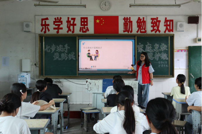为贯彻落实健康中国战略,发挥护理专业服务基层优势,近日,beat365手机版官网入口“湘心守护者”暑期“三下乡”社会实践团队赴耒阳市龙塘镇中学开展“急救技能进校园”专项活动,通过情景模拟、互动教学等形式,为200余名师生普及急救知识与健康技能。