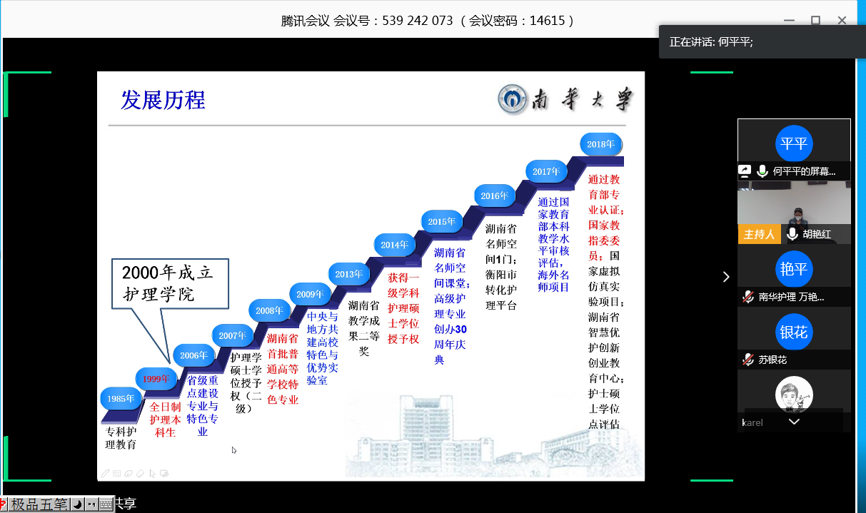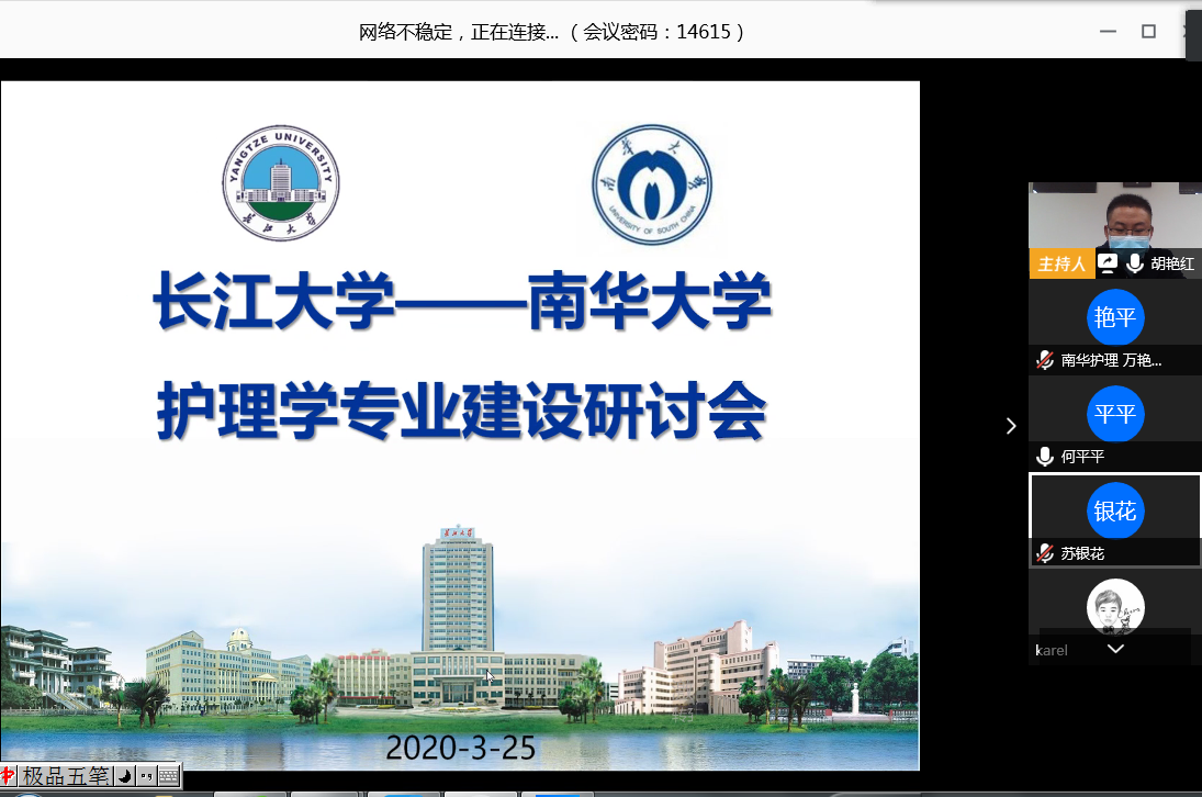 疫情时期,地处湖北省荆州市的长江大学悉知公司护理学专业成功获批国家级一流本科专业建设点,并以优秀成绩通过了教育部护理学专业认证,希望学习公司经验,因疫情不能实地考察,故于2020年3月25日上午9点召开护理学专业建设视频研讨会,两校就护理学专业国家级一流本科专业建设点申报与建设、本科专业认证评估等方面进行深度交流。长江大学医学部常务副部长龚权、副部长黄江荣、健康医公司副经理陈晓光、护理系主任周红、护理系副主任龚爱萍、胡艳红,beat365手机版官网入口经理廖力、副经理何平平、曾谷清、党委副书记彭建南,以及两校各教研室主任和全体教师参与了此次视频研讨会。会议由长江大学陈晓光副经理与beat365手机版官网入口何平平副经理共同主持。