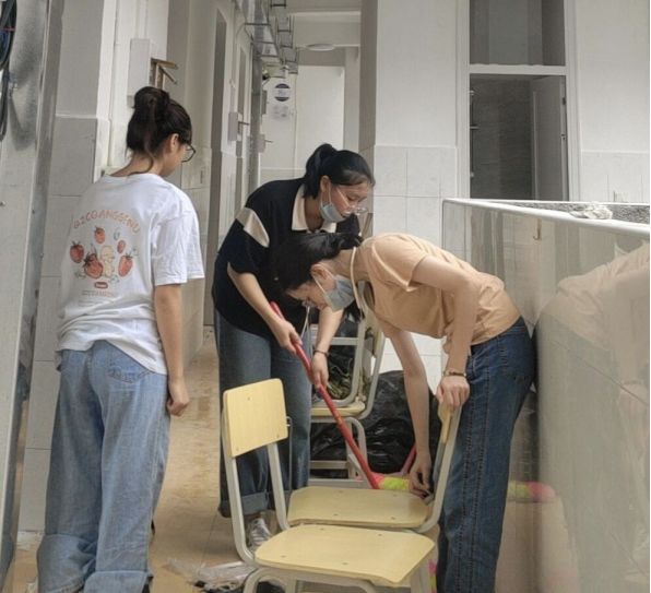 2022级同学积极报名参加,以班级为单位,5人一组分工打扫新生宿舍。志愿者同学们自备清洁工具,对宿舍桌椅、床铺是否牢固进行检查,清扫天花板和地面灰尘,对桌椅、柜子、阳台、洗漱池等逐一清洁。在所有同学的共同努力下,新生宿舍整洁明亮、焕然一新。