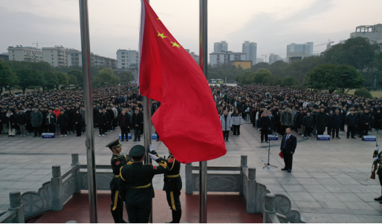 早上7时,在2000余名师生的注视下,精神抖擞的国旗护卫队迈着坚定的步伐护送着五星红旗走向红湘校区南华广场的升旗台,国旗在庄严肃穆的国歌声中徐徐升起,全场师生庄严肃立,向国旗行注目礼,满怀信心拥抱新学期,开启新征程。